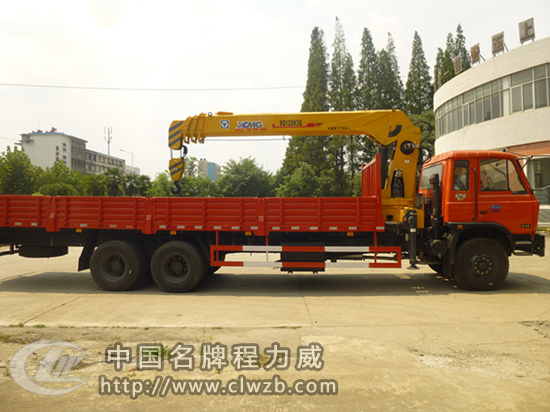 隨車起重運輸車,是一種通過液壓舉升及伸縮系統來實現貨物的升降、回轉、吊運的設備,通常裝配于載貨汽車上。一般由載貨汽車底盤、貨廂、取力器、吊機組成。載貨汽車底盤可選東風、解放、歐曼、斯太爾等各噸位。