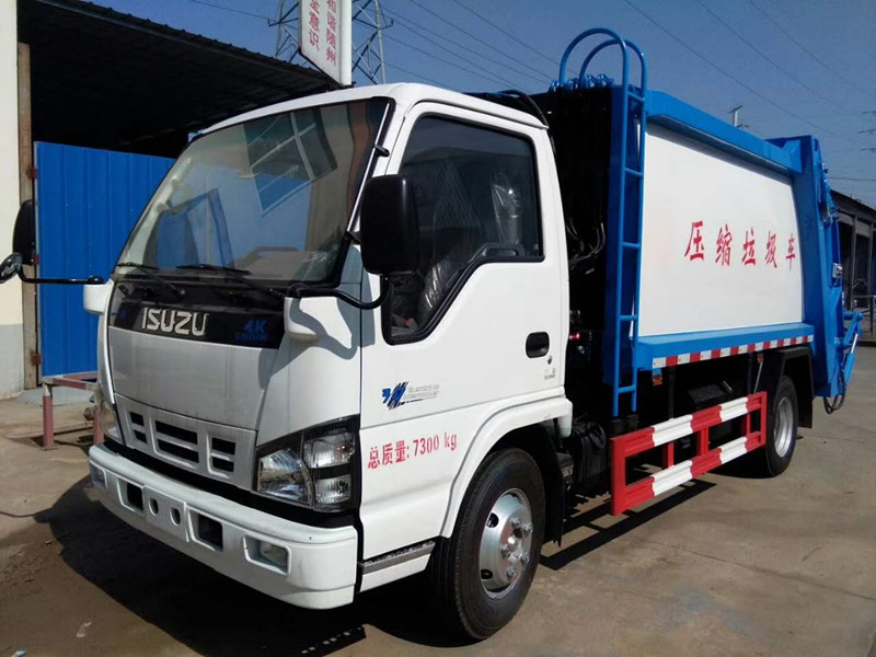 慶鈴4噸壓縮式垃圾車上裝配置:壓縮垃圾箱體,改進型外觀設計,液壓動力,電控操作,方便可靠,容積4-5方,帶污水收集箱。