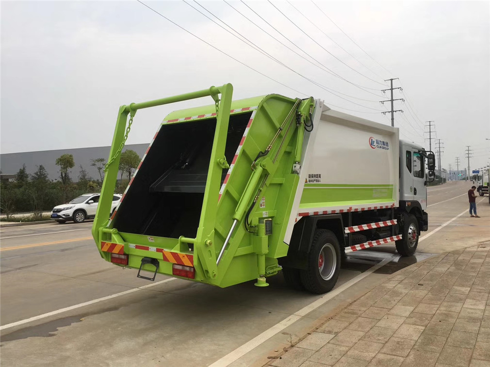 東風D9壓縮垃圾車上裝箱體是用優質碳鋼板,邊板4mm厚,底板5mm厚,箱體后部帶弧型料斗,帶液壓翻轉機構,副壓縮,帶推板功能, 整車垃圾是從后面裝垃圾,向車駕駛室前面壓縮,然后由推板,把垃圾推車,整車帶PLC一鍵控制(含駕駛室操作)是目前垃圾車用途比較廣泛的 一款車型。