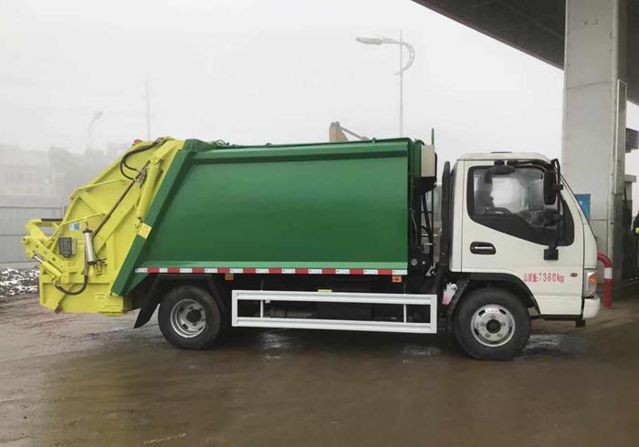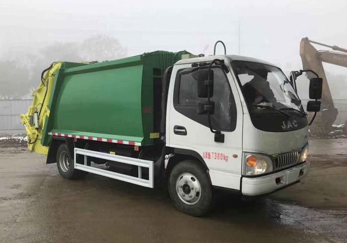 江淮康鈴壓縮垃圾車廂體弧形設計,6方箱體邊4mm,底4mm,采用國內著明品牌油缸,高密度高壓油管,多路閥和油泵,帶掛桶或小落地斗翻轉,帶PLC,選裝掛桶翻轉機構或三角斗,可選擇金屬漆。