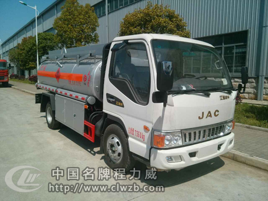 配置 1,類項號:3,罐體有效容積4.82立方米;罐體外形尺寸(長壯ぶ嶙短軸)(mm):①加油機側裝在車架左側或右側:4000?700?060,②加油機裝在罐體前部:4000?750?260(加油機倉長800);罐體上部選裝折疊護欄、選裝無上走道;選裝后部爬梯結構;選裝弧形擋泥板。文字噴涂位置可變化。工具箱可裝在車架左側或右側且安裝位置可前后變化。該車適用于危險品運輸,運送危險貨物車輛類型為:FL型,裝配限速裝置,限速80km/h。2,側防護采用冷彎型鋼/Q235,螺栓連接。后防護采用冷彎型鋼/Q235,焊接,截面高300mm,截面寬50mm,下邊緣離地高500mm。加油機型號及生產企業:BL1111Z/珠海市貝林加油設備有限公司中山分公司,HS1812B/托肯恒山科技(廣州)有限公司,SKES-1112/恒和嘉華科技有限公司(上海伯萊機械有限公司),SK20QF-111A、SK20QF-222A/鄭州三金石油設備制造有限公司,CS20D1110F/正星科技有限公司,JSK-70B1121CZ,JSK-70B1121C,JSK45B1121C/穩恩佳力佳(北京)石油化工設備有限公司, ZH6444/佛山市眾澤機電科技有限公司, XTST121BF1/邢臺正潤通科技發展有限公司。3,僅選用消聲器前置、限速裝置、前輪盤式制動及子午線輪胎的底盤;安裝帶衛星定位功能的行駛記錄儀。ABS型號/廠家:CM4XL-4S/4M /廣州科密汽車電子控制技術股份有限公司。僅用輪胎7.00R16 14PR。